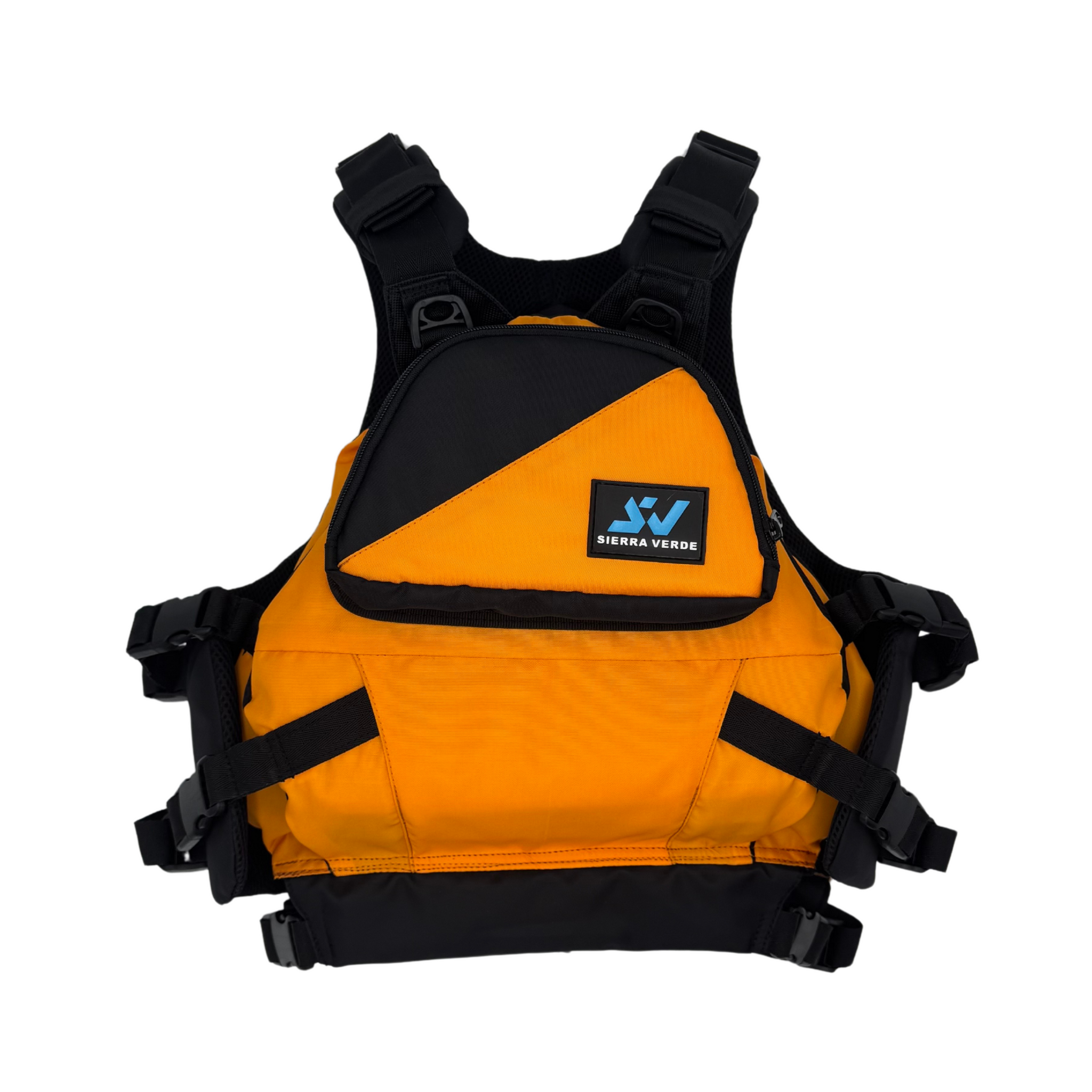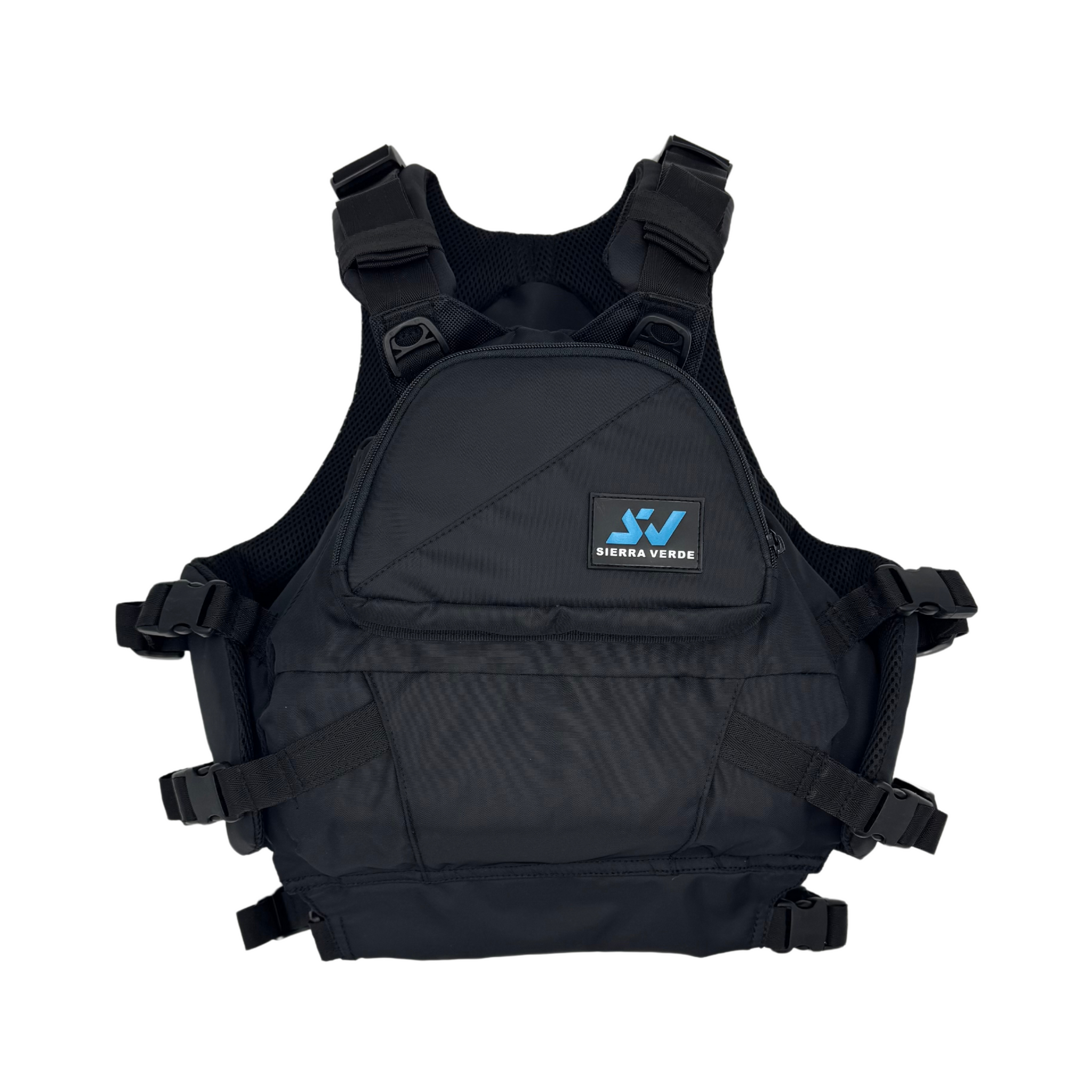 Características: Chaleco para guía o kayak con bolsa al frente con organizador, respaldo y cargadores cómodos. Cintas ajustables a los costados con hebillas para fácil ajuste. Doble polifom para mejor flotabilidad.