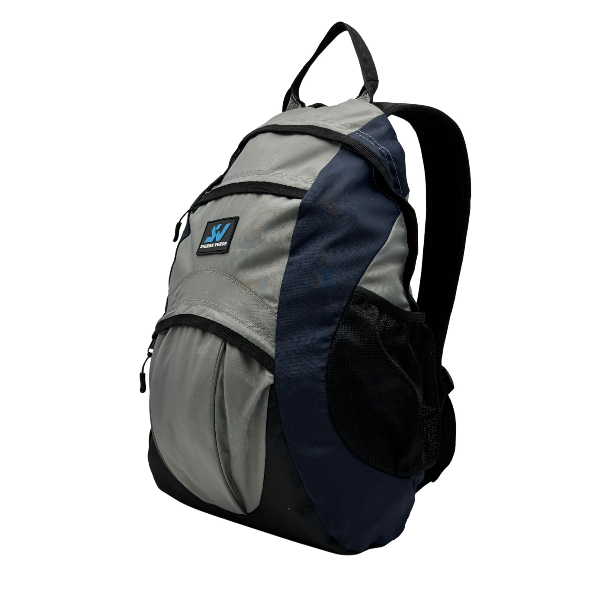Características: Mochila con dos bolsas al frente con cierre, bolsas laterales con resorte, compartimiento interior para accesorios escolares, cargadores ergonómicos y respaldo acolchado.