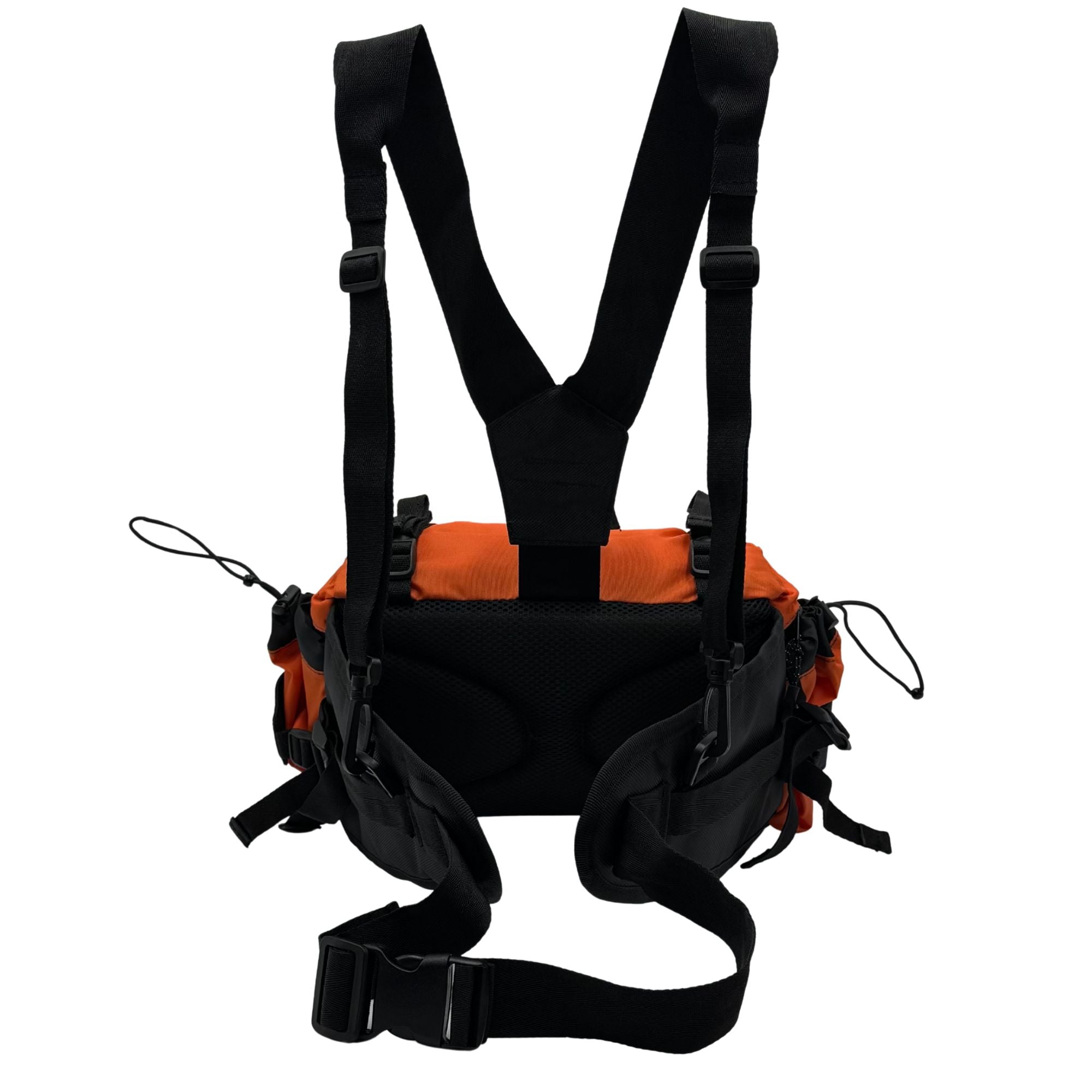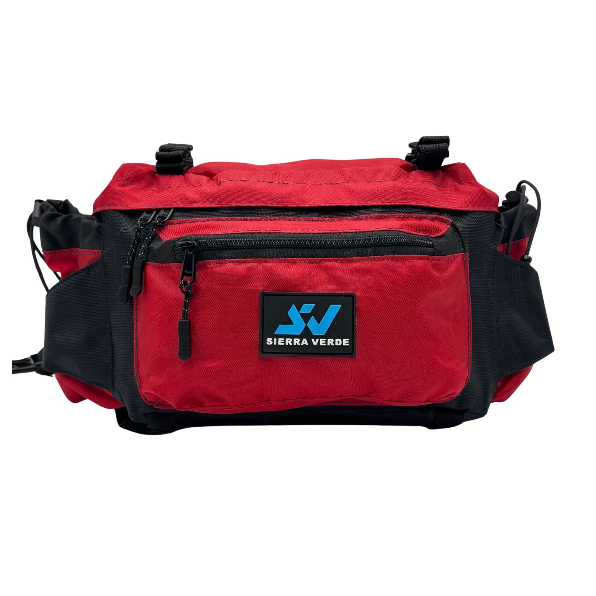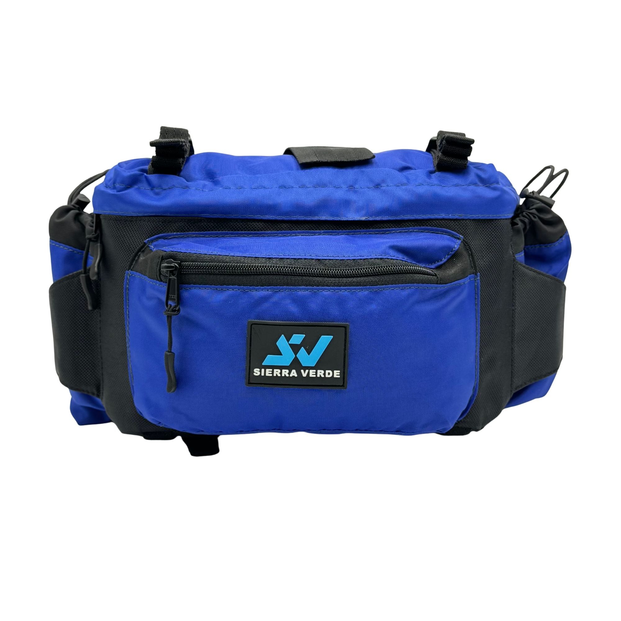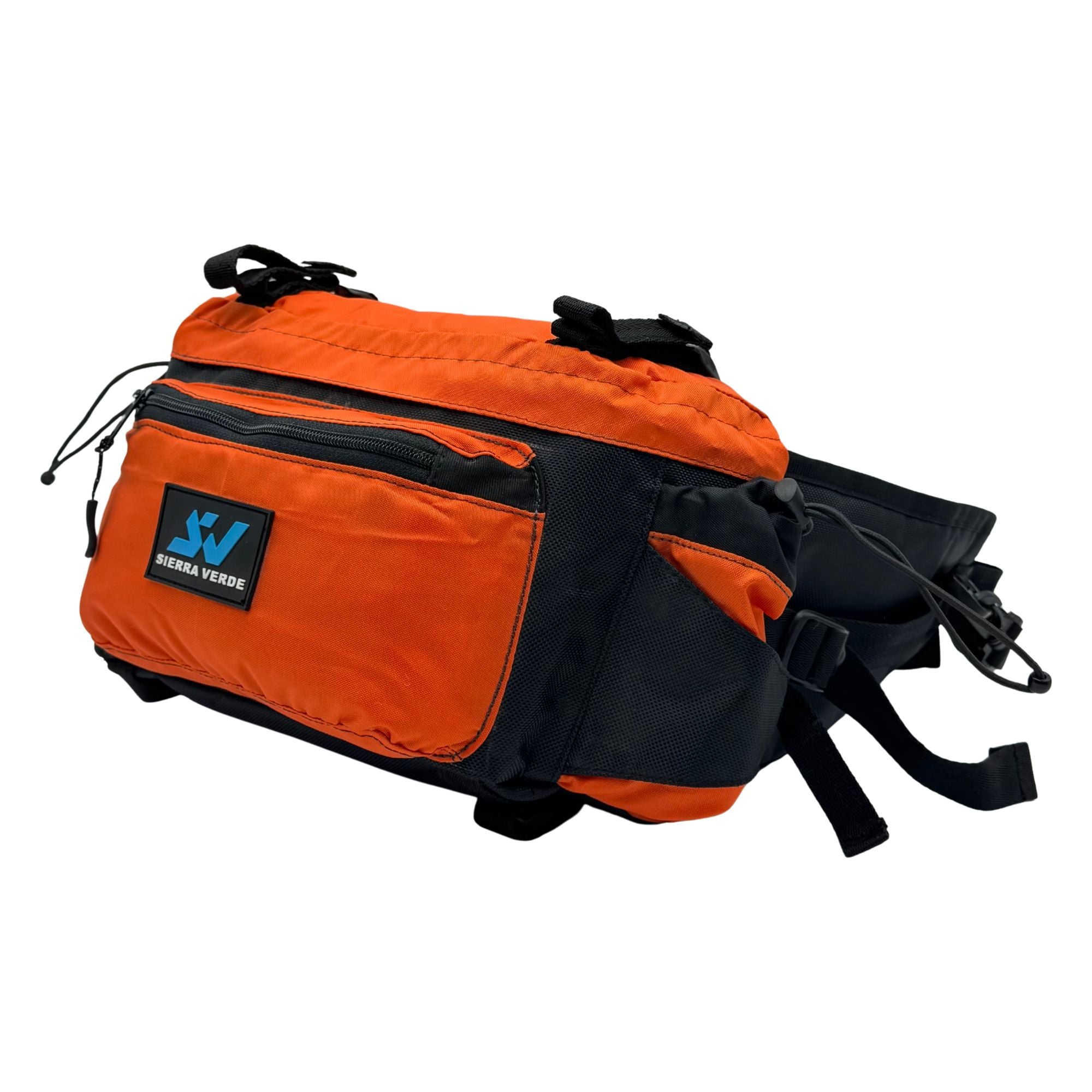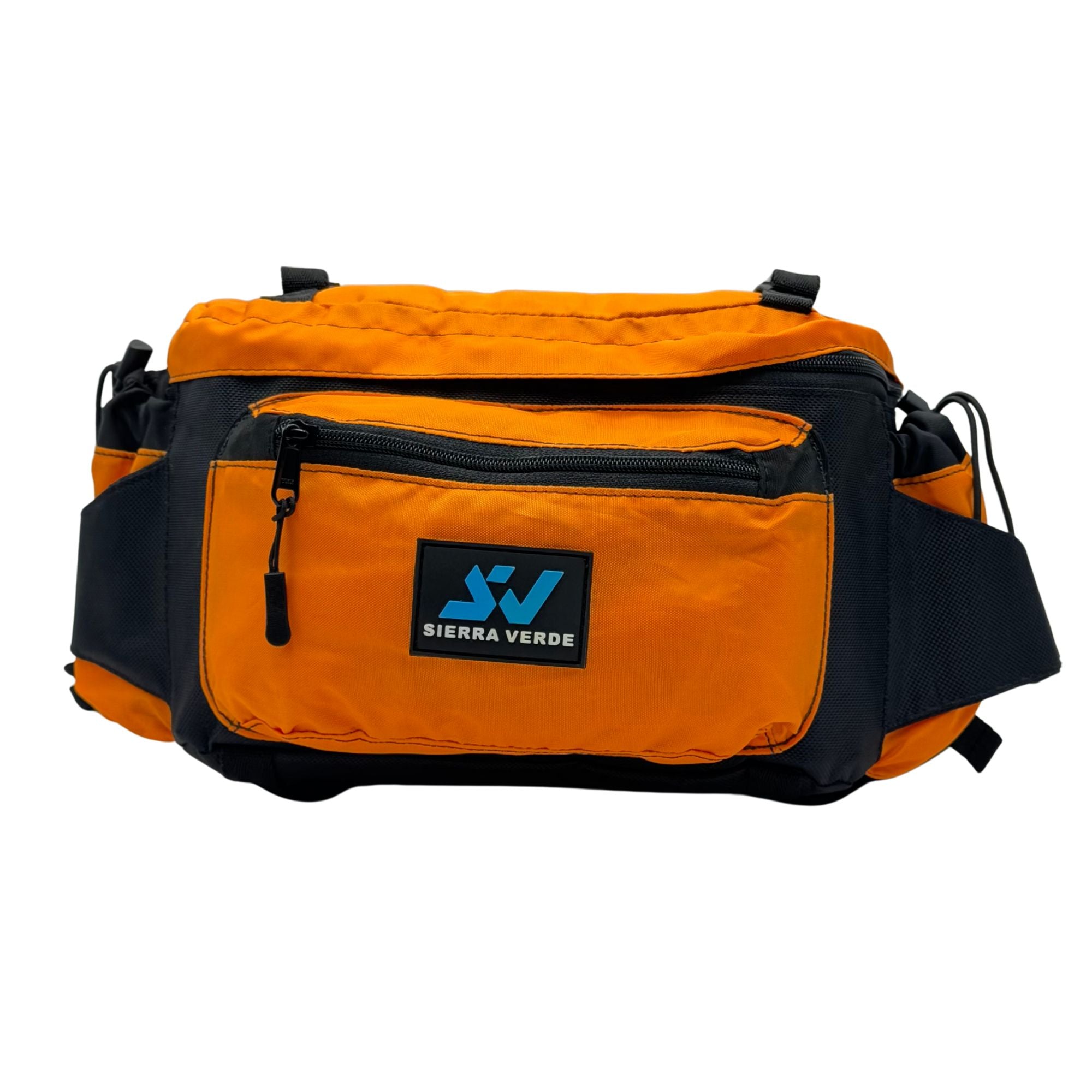 Características: Canguro con dos porta vasos laterales. Dos accesos de cierre independientes cintas compresor en la parte superior e inferior, cargadores desmontables respaldo y faja acolchonados con cinturón de 2 “.