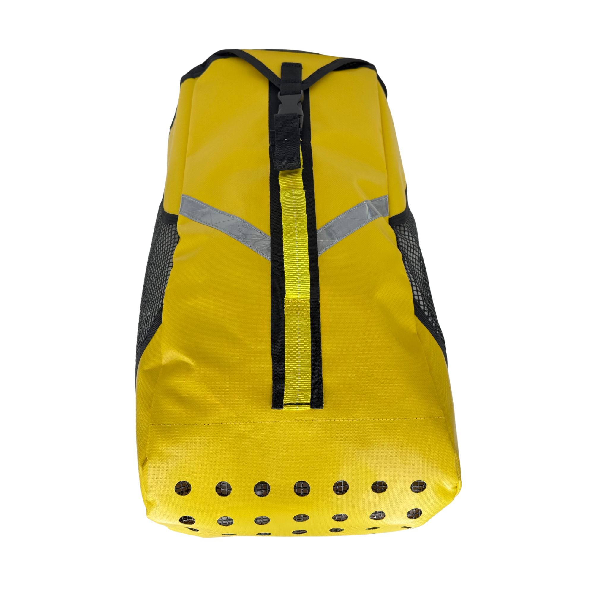 Características: Mochila para cañonismo tipo costal, con cargadores y cinta lumbar, sistema de desagüe en base con ojillos y costados de malla, tapa, bolsa interior, asa frontal.
