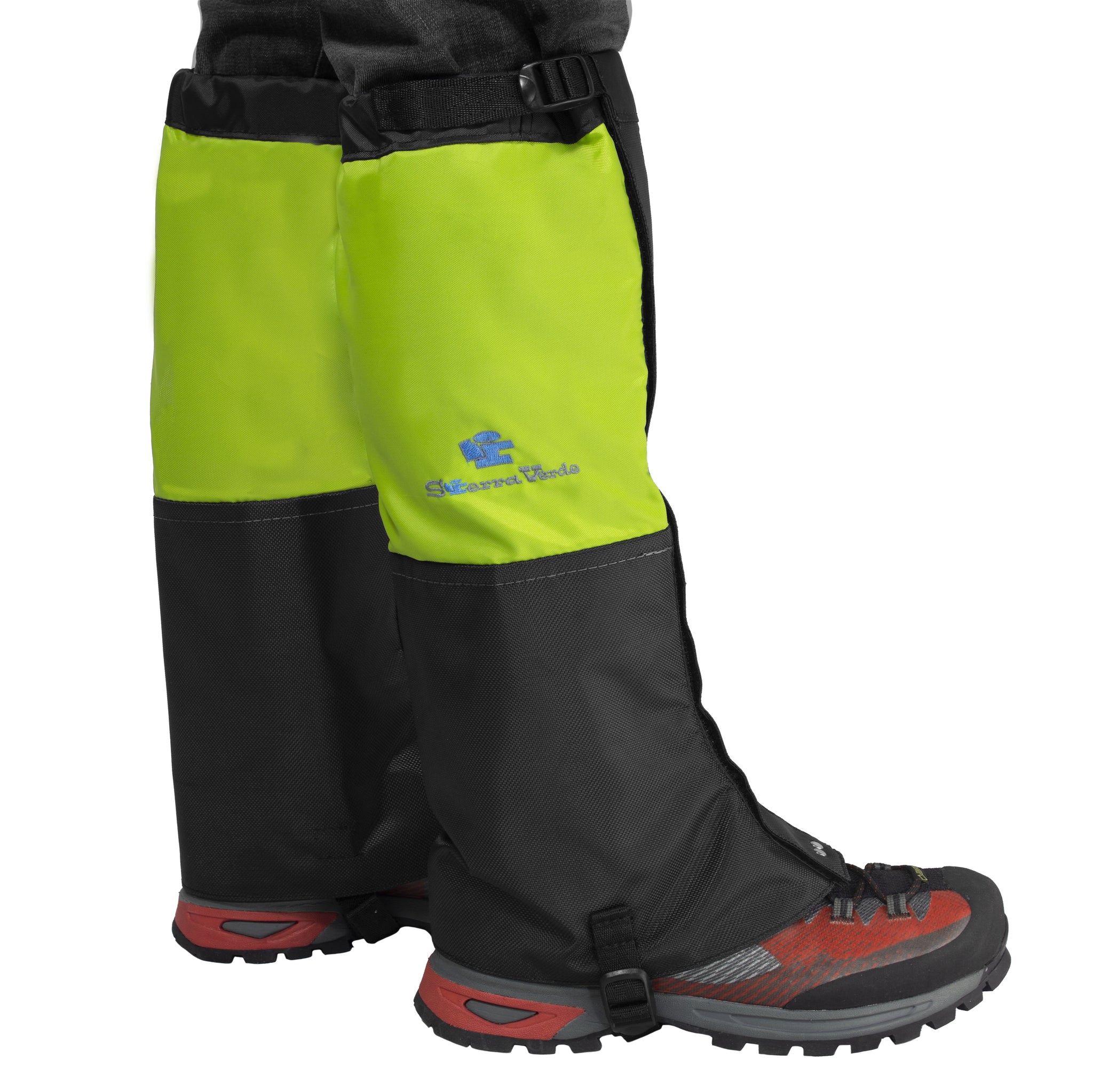 Características: Polaina para protección contra nieve, cerrada por velcro de 2” ajustable , con hebilla y cinta de ¾ “ y gancho metálico.